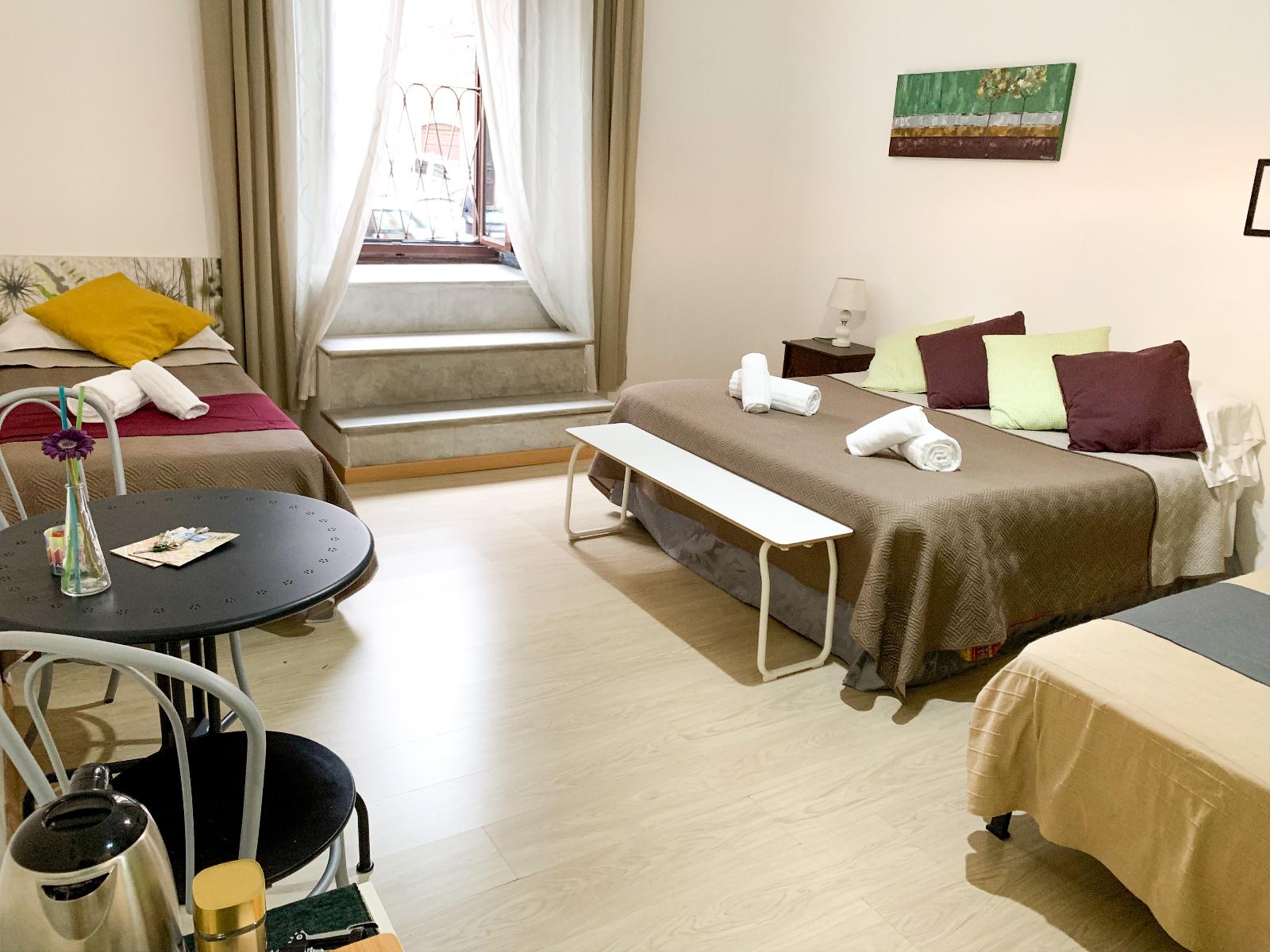 The apartment consists of 3 bedrooms and 3 bathrooms and can accommodate up to 10 people. The rooms can be double, triple and quadruple. All the newly renovated rooms are designed for relaxation and intimacy. The furnishings are comfortable, enriched by light effects, which create a pleasant atmosphere. All our rooms are equipped with private bathroom, hairdryer, telephone, LCD color TV, air conditioning, safe, free wi-fi.